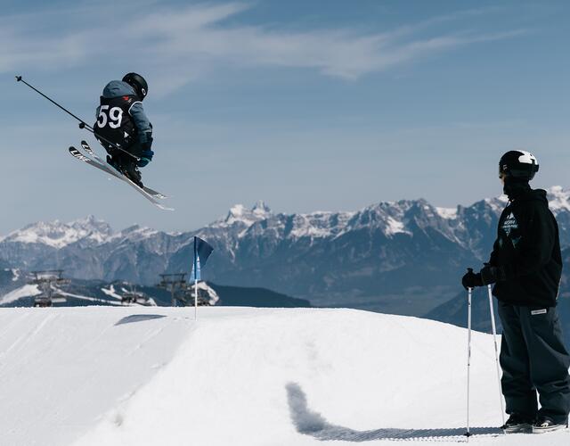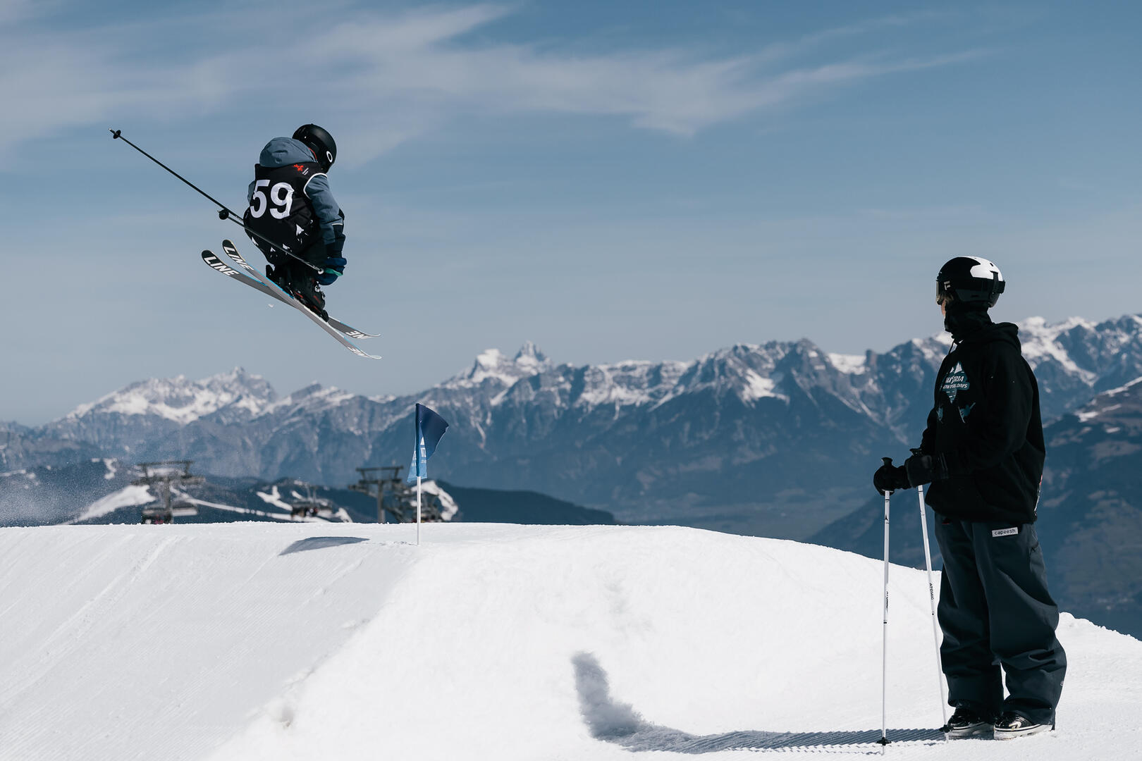 Gemeinsam mit den Coaches lernen die Nachwuchs-Rider neue Tricks und verbessern ihre Technik – ganz egal, ob Einsteiger oder erfahrene Freestyler auf Ski oder Snowboard.