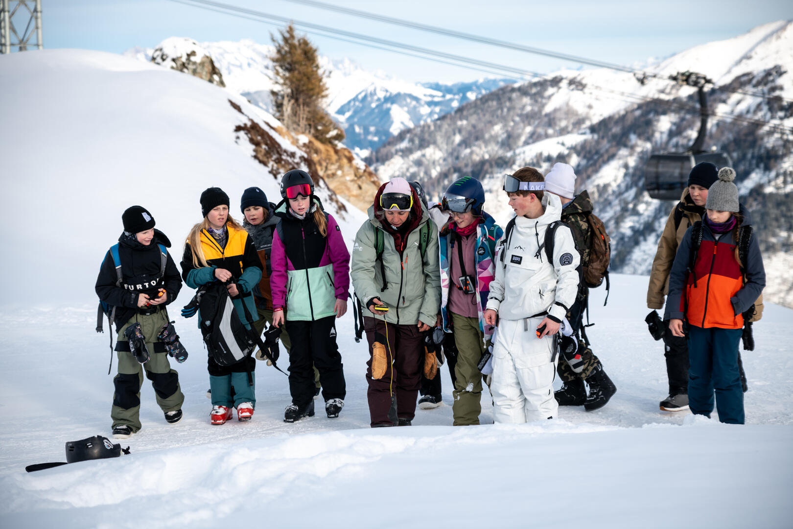 10- bis 12-jährige Freerider sind mit Profis des Österreichischen Alpenvereins abseits der gesicherten Pisten unterwegs. Dabei steht die Sensibilisierung für das Fahren im freien Gelände im Mittelpunkt: Wie gestaltet sich ein sicherer Run? Wie verständigt man sich im Team? Welche Notfallausrüstung ist notwendig und wie funktioniert sie?