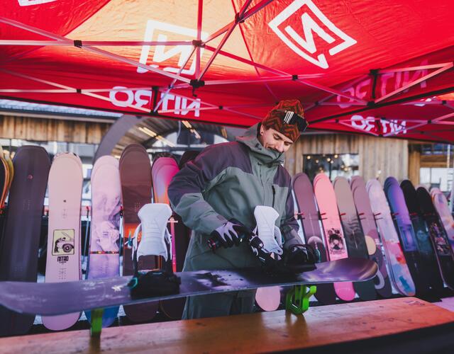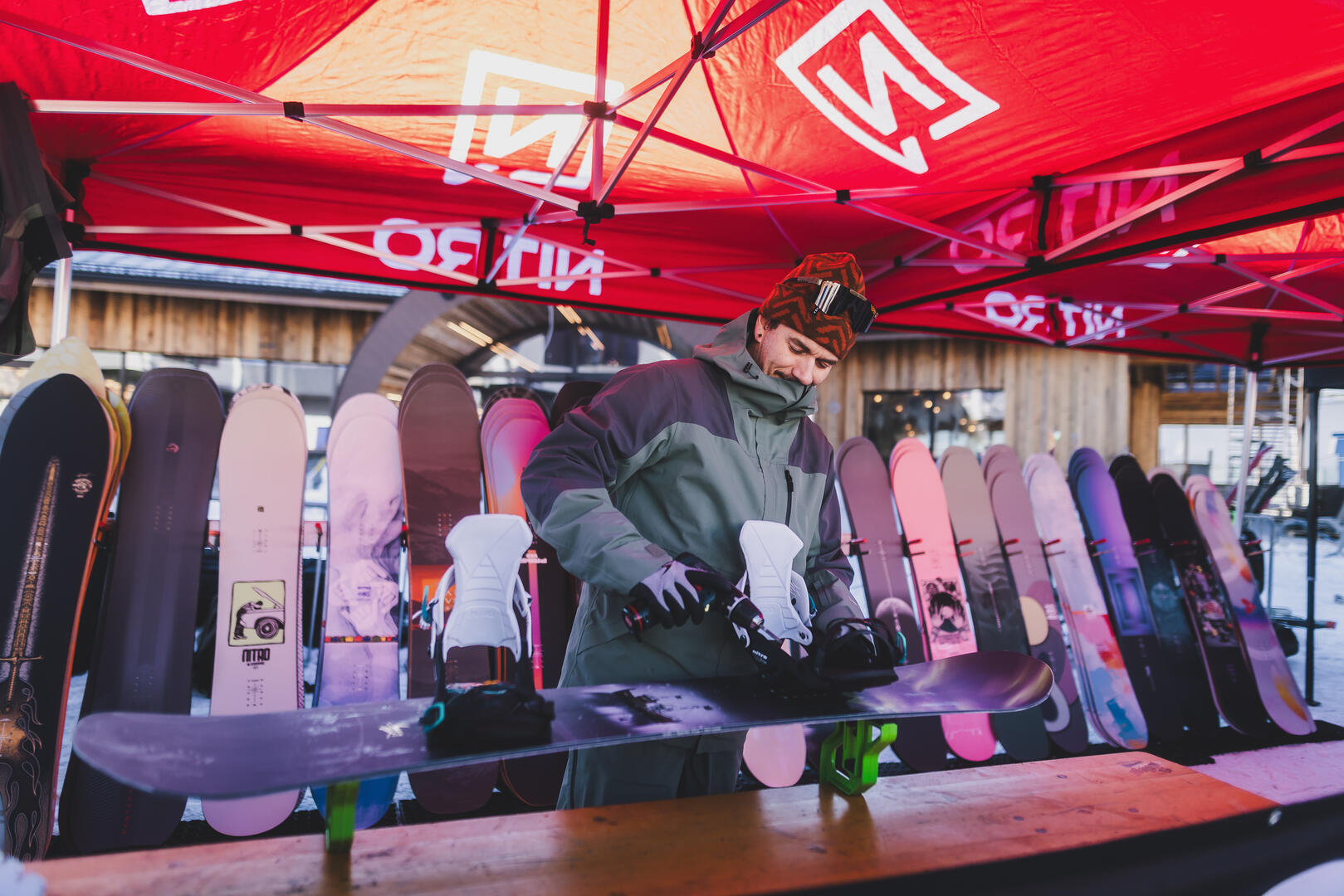 Direkt beim Alpincenter auf 2.450 Metern konnten die Gäste kostenlos aus einer Vielzahl topaktueller Modelle wählen. Vom Racecarver bis zum Freeride-Board – die teilnehmenden Marken hatten das Beste aus ihrer kommenden Kollektion mitgebracht. Dank der perfekten Schnee- und Pistenverhältnisse bot sich die seltene Gelegenheit, die Neuheiten unter realen Bedingungen auszuprobieren.