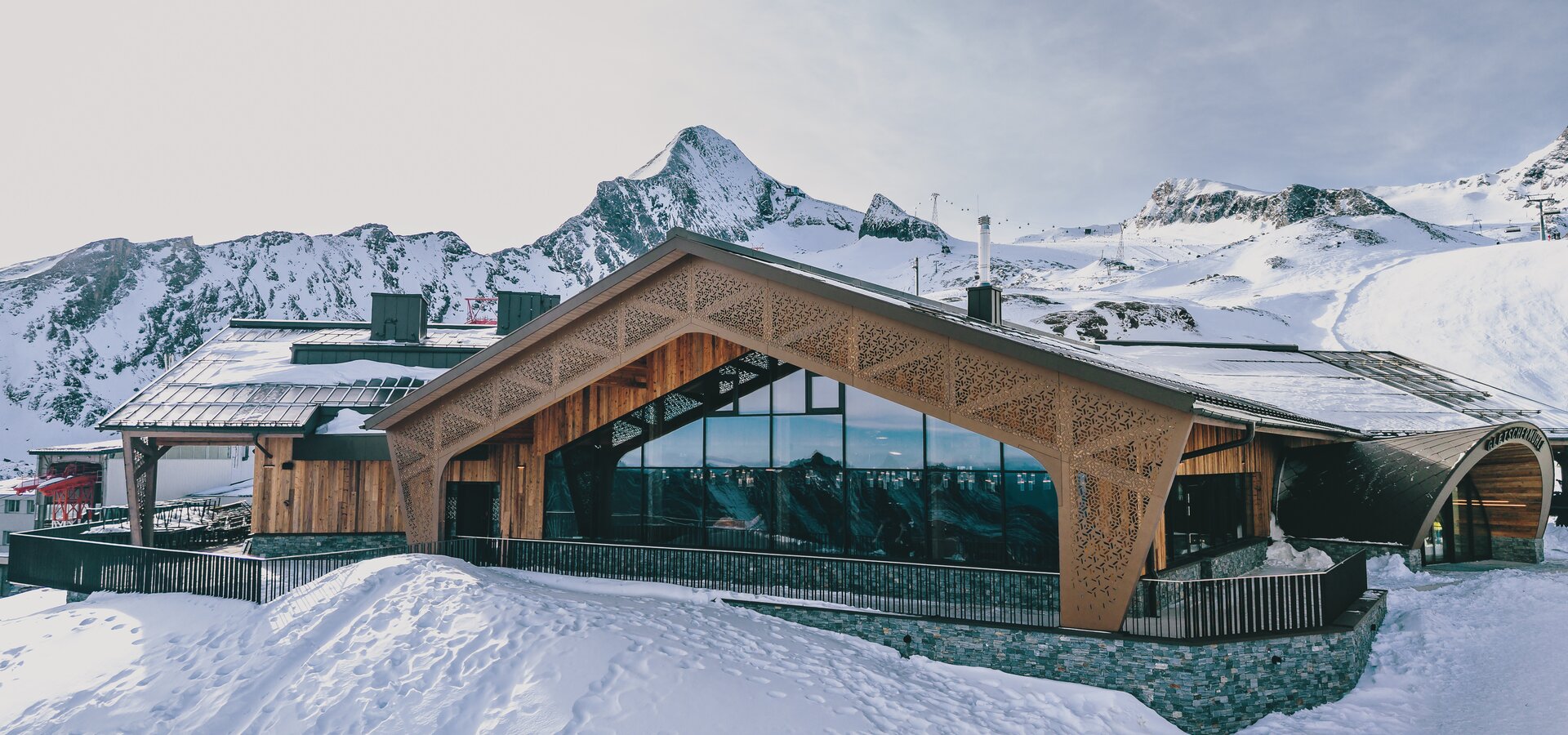 Modern architecture, premium interiors, and stunning panoramic views make the restaurant a true highlight on the mountain. The main dining area and a bar with a fireplace lounge are located on the ground floor. A winding staircase leads up to the Kitzsteinhorn Lounge on the upper level, where guests enjoy exclusive service and an unparalleled view of the summit.