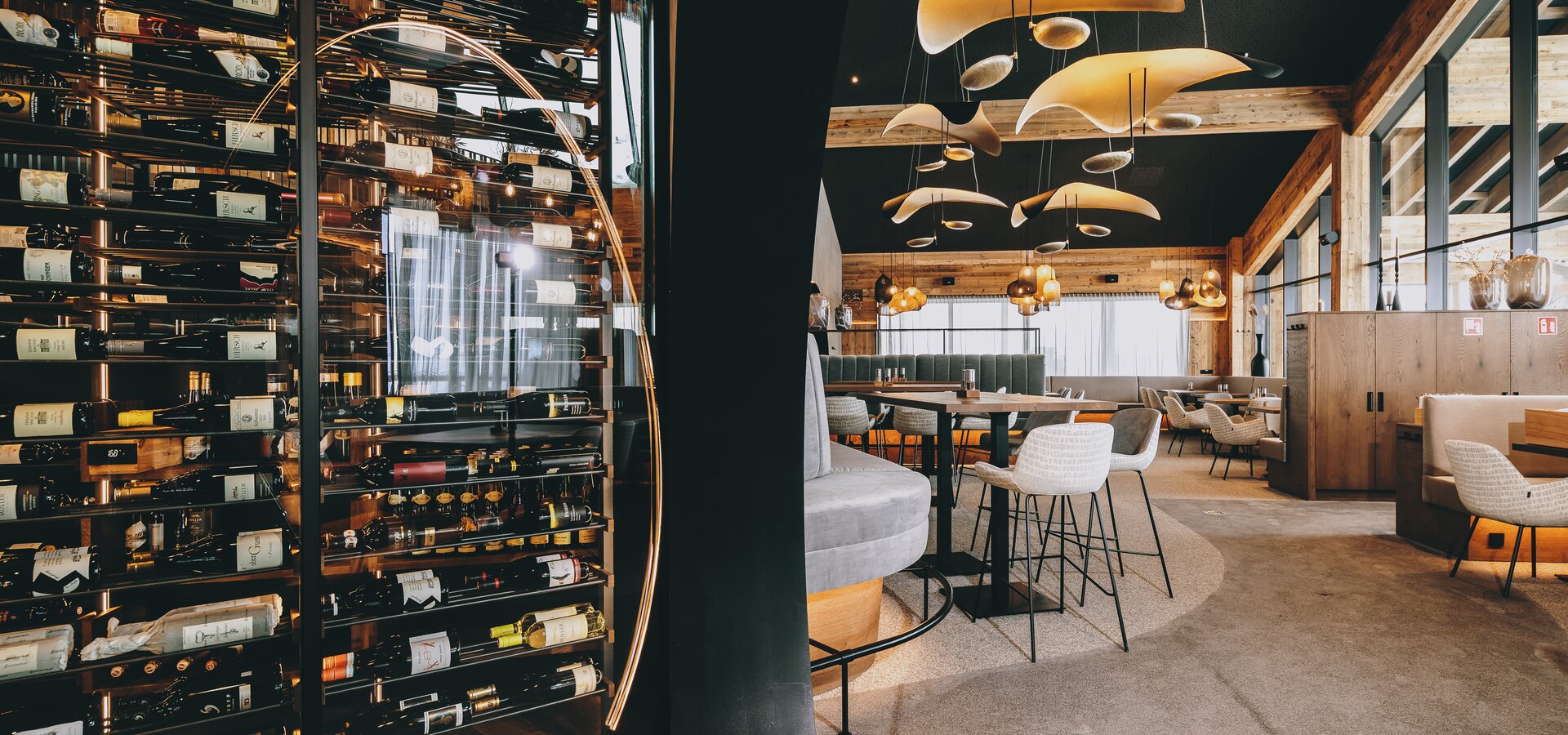 Modern architecture, premium interiors, and stunning panoramic views make the restaurant a true highlight on the mountain. The main dining area and a bar with a fireplace lounge are located on the ground floor. A winding staircase leads up to the Kitzsteinhorn Lounge on the upper level, where guests enjoy exclusive service and an unparalleled view of the summit.